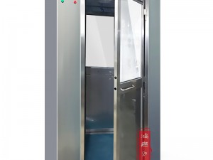 带轮式移动风淋房风淋室采用全自动控制运行,双门电子互锁,自动感应开关门,自动感应吹淋,吹淋时双门锁闭,加厚不锈钢底板,不锈钢喷嘴作为基本配置,采用数显吹淋时间,风淋时间为0~99s可调,并显示已风淋时间,采用台湾进口电机“TIAN LONG"功率1000W。